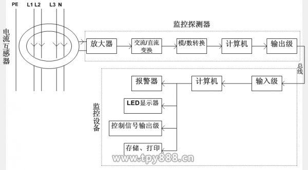 為了能夠預(yù)防和減少電氣火災(zāi),必須能夠在線檢測AC220/380V供電線路的絕緣狀態(tài),以此來杜絕漏電和各種短路故障的發(fā)生。電氣火災(zāi)監(jiān)控系統(tǒng)就是用來實時監(jiān)測供電線路的絕緣狀態(tài)并實施報警的,當(dāng)電氣線路或者電氣設(shè)備一旦漏電并超過額定保護(hù)值時,報警器立即發(fā)出聲光報警信號并顯示出漏電電流的大小。因為從發(fā)生接地電弧故障到引燃起火以致火勢蔓延需要一定的時間,這就有足夠多的時間去檢查并排除故障,從而能夠有效地避免電氣火災(zāi)的發(fā)生或者將損失控制在較小的范圍之內(nèi)。為了保證供電的連續(xù)性,報警時通常不切斷電源,這樣就可以避免電源開關(guān)跳閘而引起整棟建筑物的停電。為了確保安全,在緊急情況下可以再去切斷供電電源。